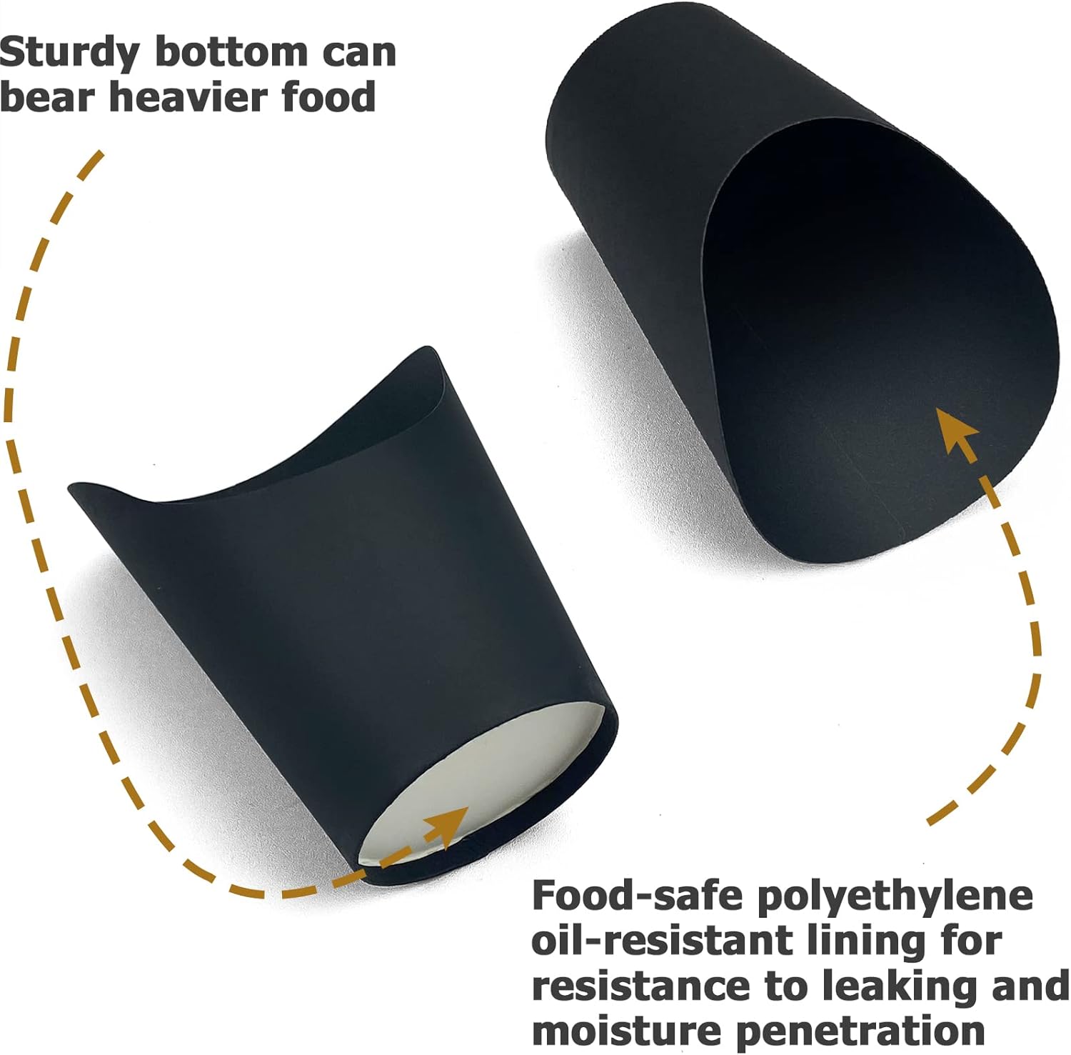 CAMKYDE 50 Pcs French Fries Holder, 14oz Disposable Paper French Fry Cups Charcuterie Cups for all Occasions (14oz, Black)