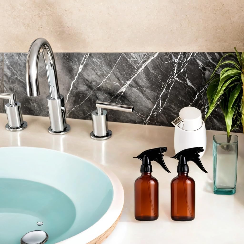 2 Pack Amber Glass Spray Bottles – 8oz Refillable Mini Bottles for Essential Oils, Perfumes, Serums, and DIY Skincare – Durable Small Amber Containers with Spray