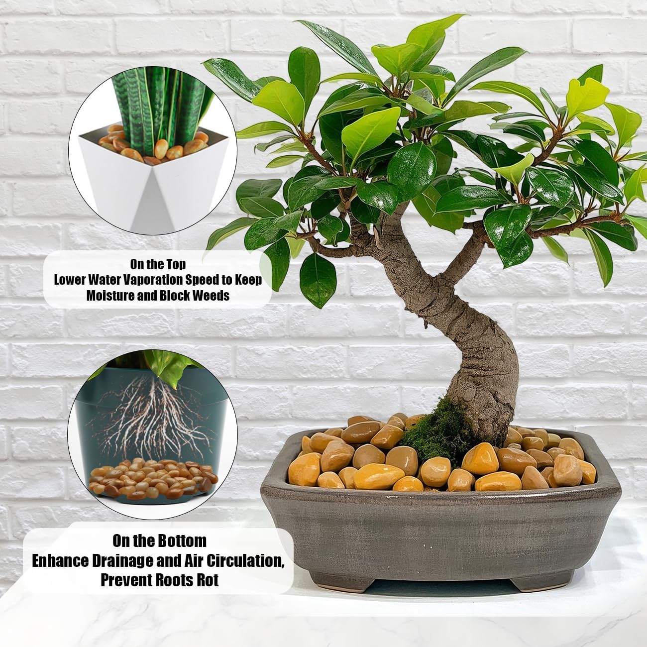- Benefits For Plants: Pebble tray for plant humidity. These small pebbles for indoor plant keep soil moisture and protect soil from weeds, being dug up by house pets