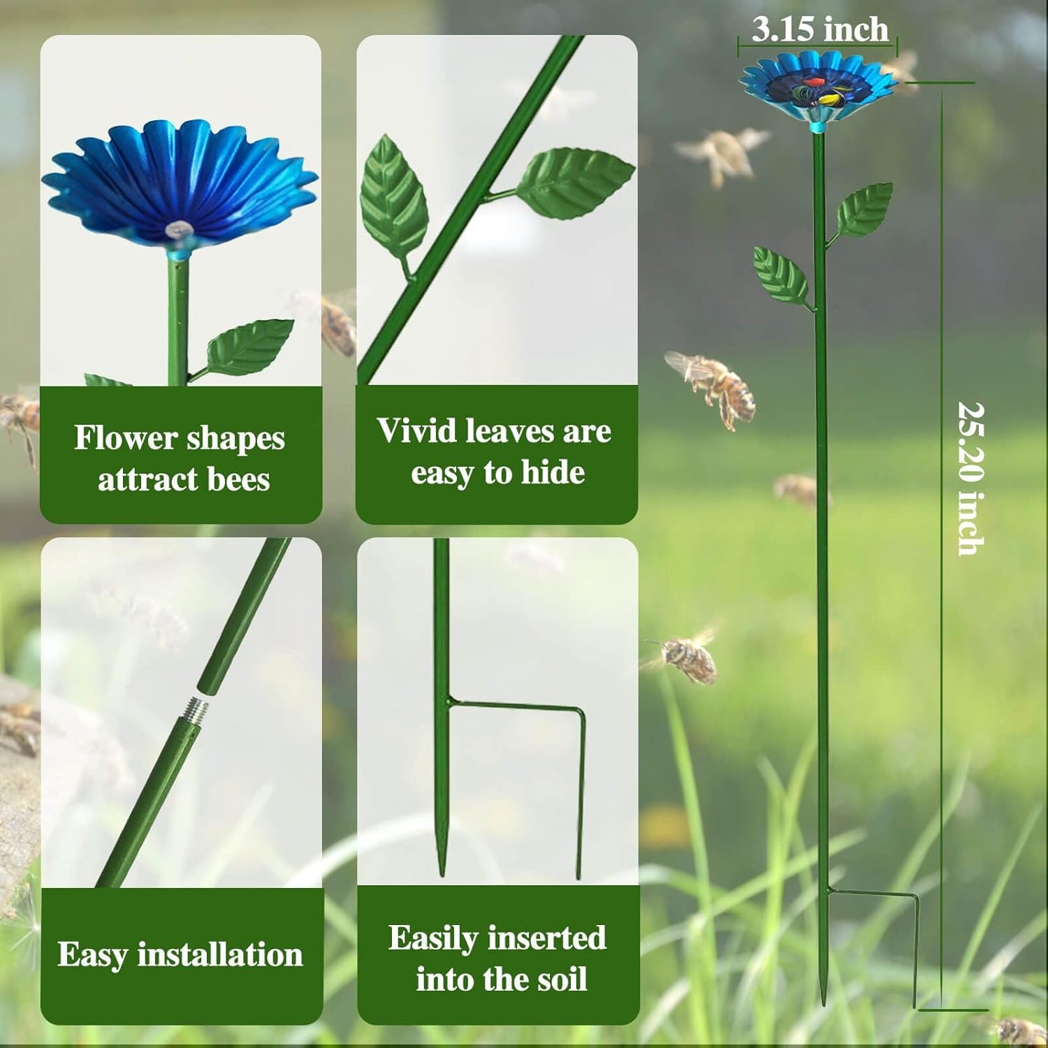 - Easy to set up & maintain: bee water feeder is simply fitted with the flower and pole diameter, then inserted into the garden soil, filling the bee feeder with water and adding small stones for safety. easy to clean and refill for continuous bee and butterfly drinking support