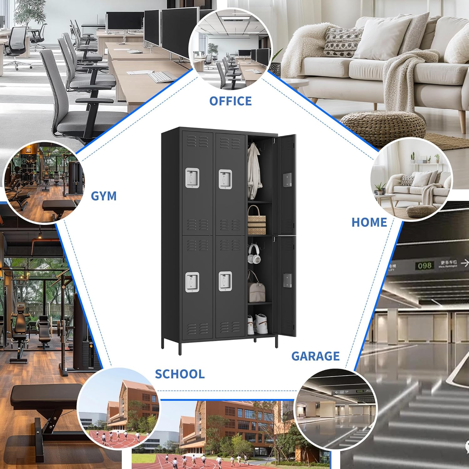 - LARGE STORAGE CAPACITY - The 6 door metal locker measures 72"H x 15.7"W x 35.4"D and is equipped with 3 separate compartments. This design caters to your storage needs for items of different sizes, efficiently accommodating most of your daily storage requirements